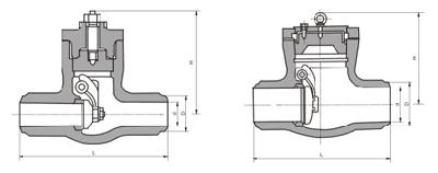 H64Y typ 1500 (Lb) ~ 2500 (Lb) högtemperaturstumsvetsbackventil för Class1500 ~ 2500Lb, driftstemperatur -29 ~ 570 ℃ petroleum, kemiska, termiska kraftverk och andra förhållanden i rörledningen.
